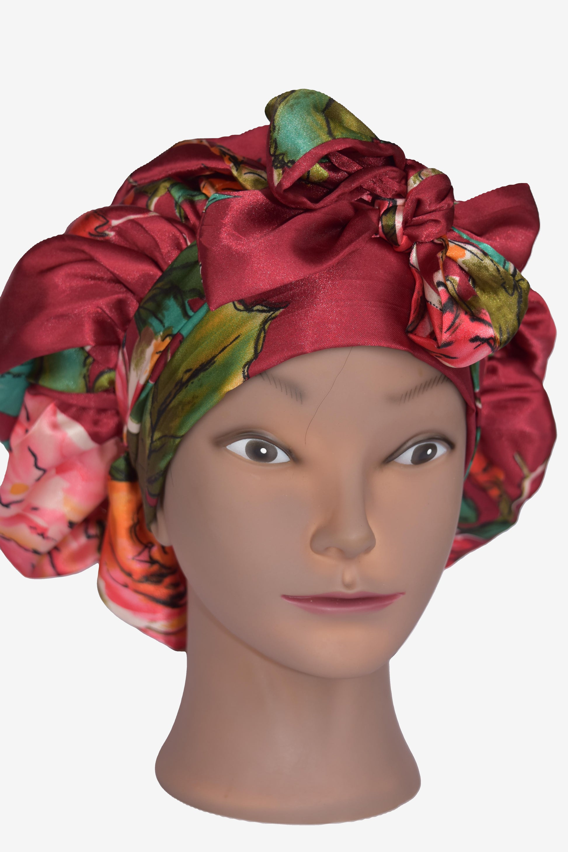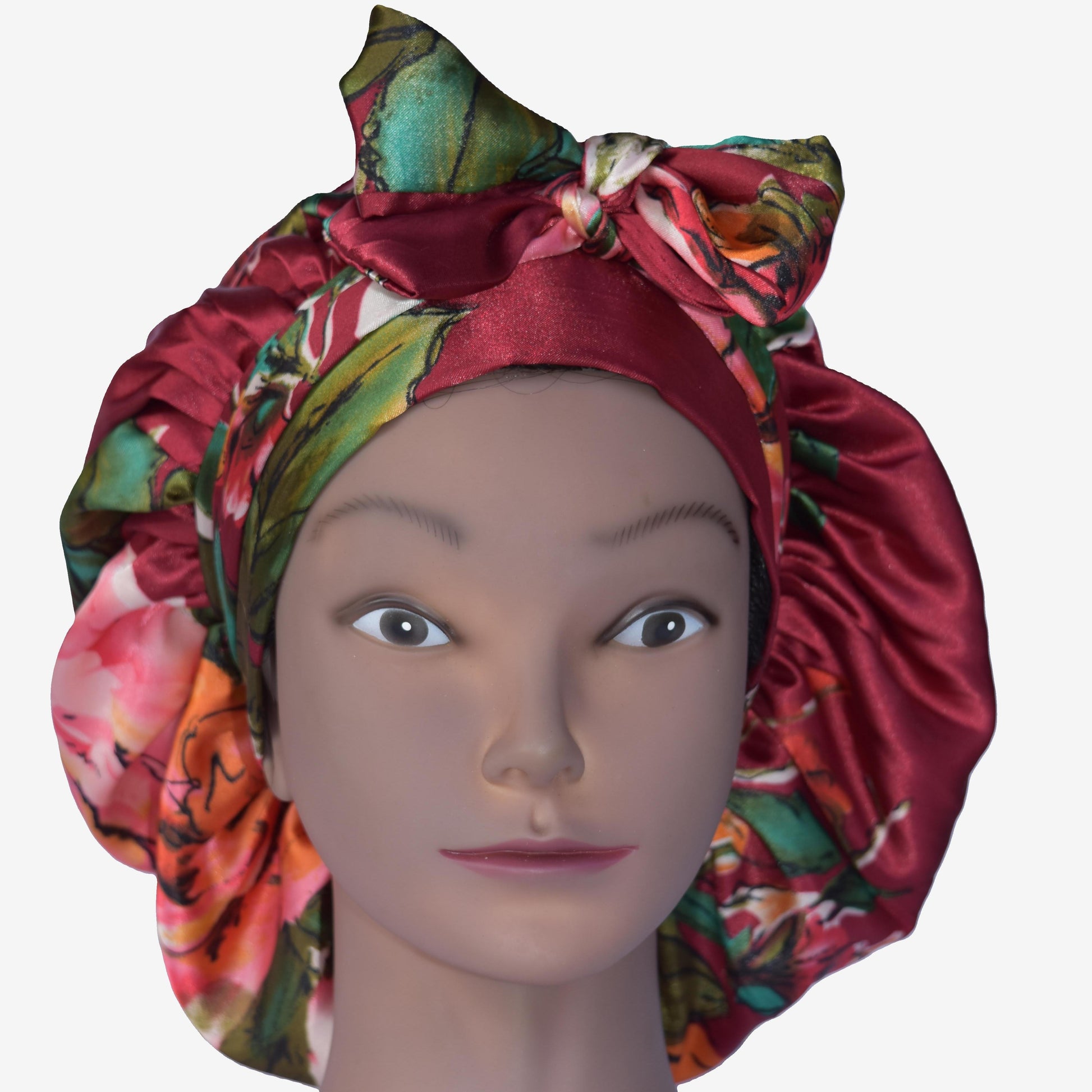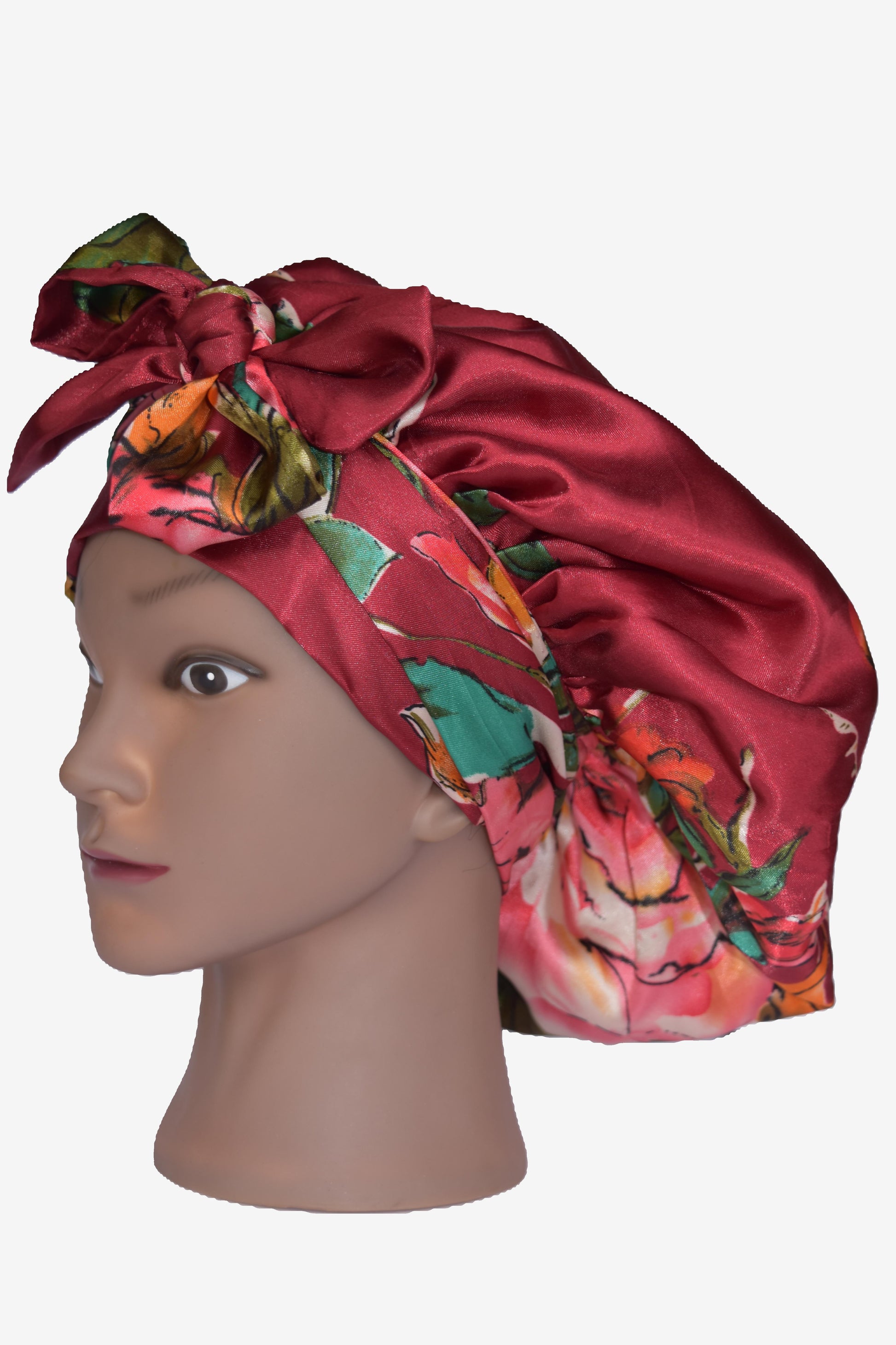 Crimson Bloom Satin Tie Bonnet