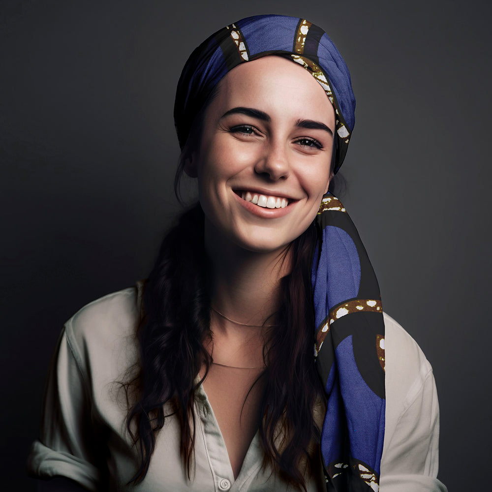 Featuring a sophisticated, interwoven chain-like design, this headwrap combines elegance and functionality. Perfect for natural, curly, or coily hair, it provides gentle protection while adding a stylish touch to any outfit. Whether you’re dressing up or down, this versatile wrap offers a chic, modern twist to traditional African