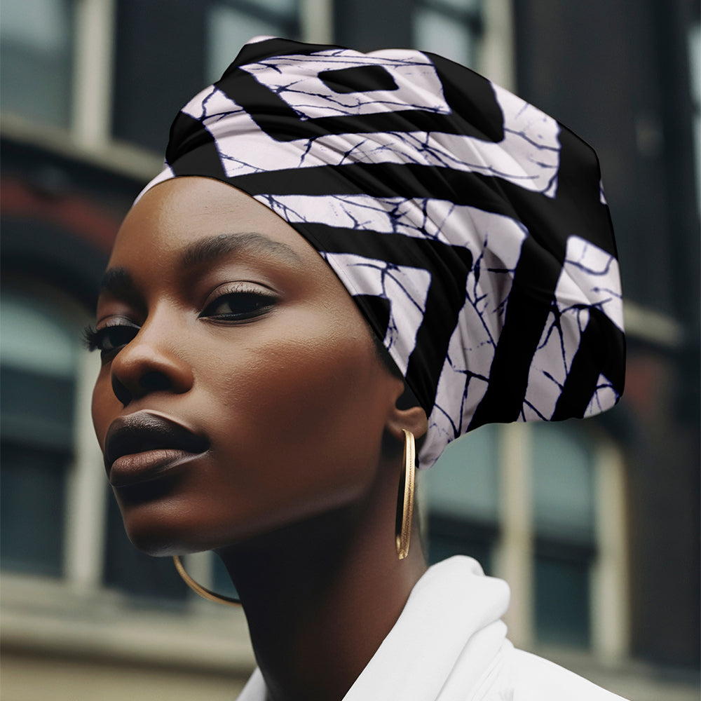 Discover the elegance of this best-selling black and white geometric headwrap, a perfect blend of modern design and timeless style. The striking geometric patterns in contrasting black and white make this headwrap a must-have accessory for any fashion-forward wardrobe. Ideal for all hair types, especially curly and coily textures, it offers both style and protection, making it a go-to for everyday wear or special occasions.