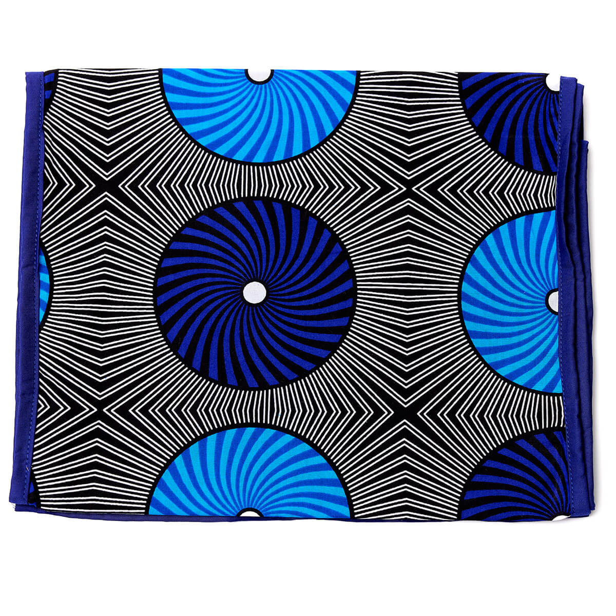 Navy Blue Headwrap with Black Circular Shapes – Elegant and Eye-Catching