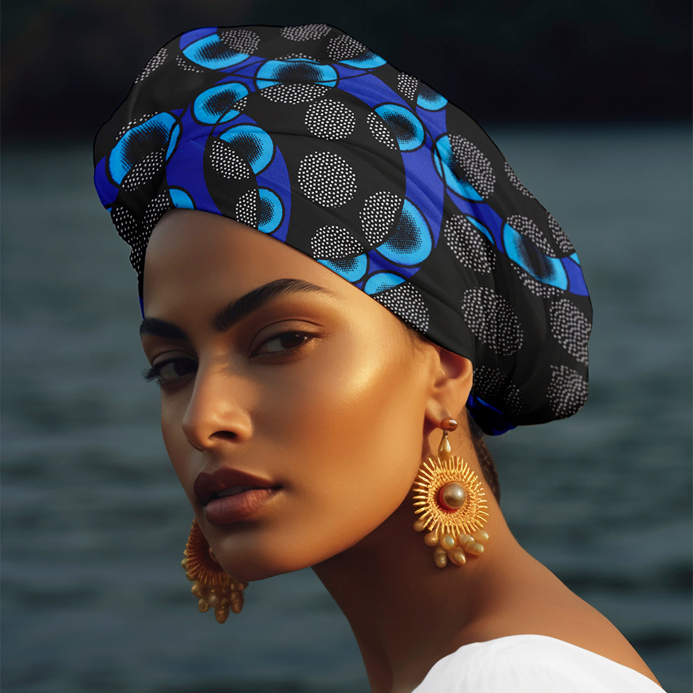 Add a bold pop to your outfit with this blue patterned headwrap. Made from lightweight, breathable fabric, this headwrap is perfect for protecting straight,curly and coily hair. Its size allows for various styling options, making it ideal for natural hair, locs, twists, and braids. Whether for everyday wear or a special occasion, this African-inspired headwrap adds a touch of elegance and versatility to any look.